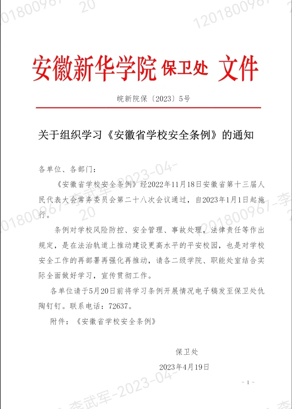 关于组织学习《安徽省学校安全条例》的通知