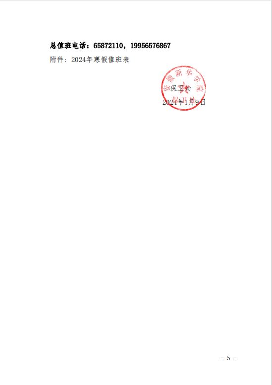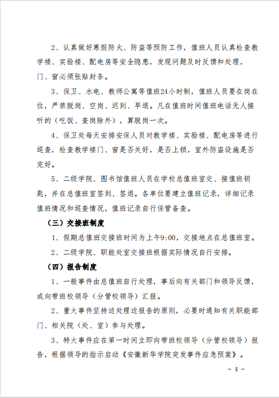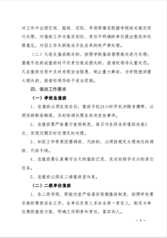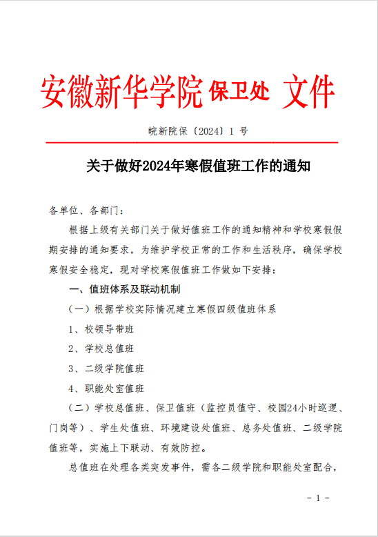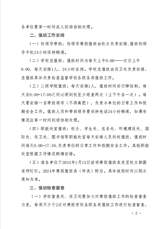 关于做好2024年寒假值班工作的通知