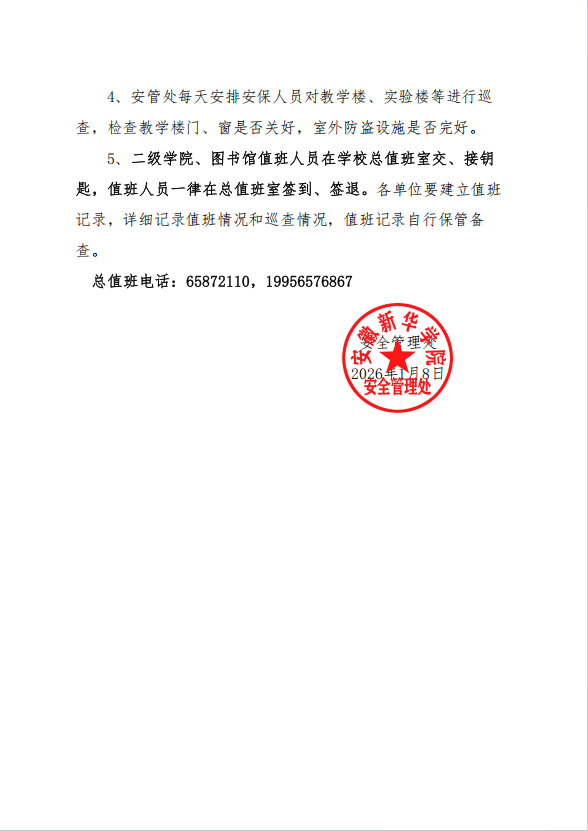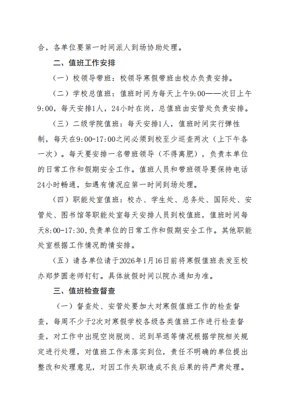 关于2026年寒假值班工作的通知