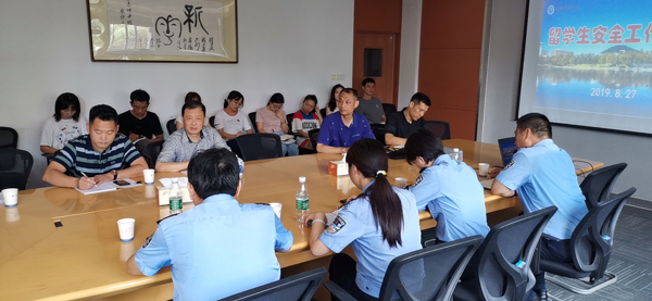 本网讯 (通讯员:仇陶)按照学校相关工作安排,结合WilliamHill官网留学生和外教管理的现状,8月27日上午,留学生安全工作座谈会在国教院二楼会议室召开,公安高新分局治安大队、国保大队、高新派出所的分管领导和干警,国教院院长徐鸣、留学生管理人员和保卫处有关人员参加会议。会议由保卫处副处长仇陶主持。