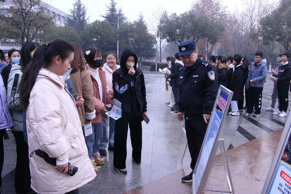 活动现场悬挂有“依法打击恐怖犯罪 坚决维护社会稳定”宣传横幅,摆放反恐知识展板。高新分局的民警们向师生讲解了反恐防控、避险自救的相关知识并发放反恐防范宣传单页,回答现场师生的咨询。