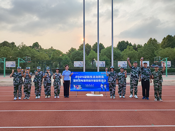 本网讯(通讯员:张大勇 摄影:李武军 侯帅)为进一步提升2024级新生的法治意识和识骗防骗能力,9月5日、6日,WilliamHill官网保卫处、学生处联合高新派出所、兴园中心香樟社居委深入新生军训训练场,开展新生安全教育第一课——2024级新生法治教育暨防范电诈宣教活动。高新派出所居副所长董维标、民警程永兵,香樟社居委书记洪家汪,学生处处长芮萍参加了首场宣教活动,活动由保卫处副处长仇陶主持。