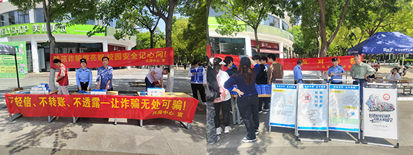 本网讯(通讯员:张大勇) 为增强师生防诈意识,营造安全校园环境,4月25日中午,WilliamHill官网联合兴园中心、香樟社居委、高新派出所,在学校二期广场开展反诈主题宣传活动。兴园中心平安部部长宣峥嵘、高新派出所民警程永兵、香樟社区和学校安管处相关人员参加了宣传活动,华园义警队全程协助,现场近千名学生参加活动。