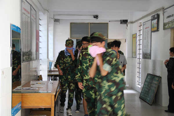 演练前,保卫处对现场进行了严密的部署,疏散引导员定岗定位,同时为贴近实战,安排专人在每栋公寓楼二层楼梯口处燃放烟雾弹。14:30分,消防警报在校园上空响起,消防演练正式开始,公寓楼内烟雾弥漫,同学们用湿毛巾捂住口鼻,用低姿势在疏散引导员的指挥下按照应急疏散路线,安全、有序的朝公寓楼安全出口处紧急撤离,到达疏散安全区域。