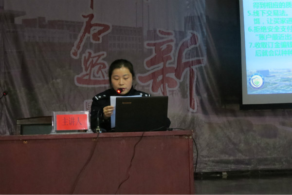 首先,刑警大队李警官详细讲述了网络上存在的10多种诈骗类型,即:中奖诈骗、QQ诈骗、购物诈骗、股票诈骗、网络钓鱼、企业邮箱诈骗、刷信誉诈骗、色情诈骗、购买机票诈骗、“引诱汇款”诈骗、利用任意显号软件诈骗、新型诈骗等,对网络诈骗作案特点和发案原因等进行了分析,重点阐述了针对不同诈骗类型应采取的防范措施。高新分局刑警大队王树生副大队长通报了近几年网络诈骗的发案情况,用现实生活中的典型案例,向每位参训人员阐述了网络诈骗带来的危害,要求广大师生增强安全防范意识,提高辨别能力。