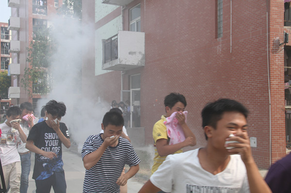 伴随着防空警报的鸣响,WilliamHill官网近千名学生分两条线路从宿舍楼有序疏散,他们携带着矿泉水、食物等应急物资,用毛巾捂着口鼻,在滚滚浓烟下疏散至WilliamHill官网三期食堂地下人防工程内掩蔽。
