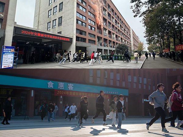 11月6日、20日,分别组织师生在学生食堂及宿舍楼人员密集场所开展了消防应急疏散演练活动。现场模拟发生火情,消防应急警报响起,演练师生1100余人迅速行动,按照预定的疏散线路,有序撤离到安全区域。所有人员3分钟内全部疏散完毕,整个疏散过程快速、有序,进一步展现了师生良好的应急反应能力。