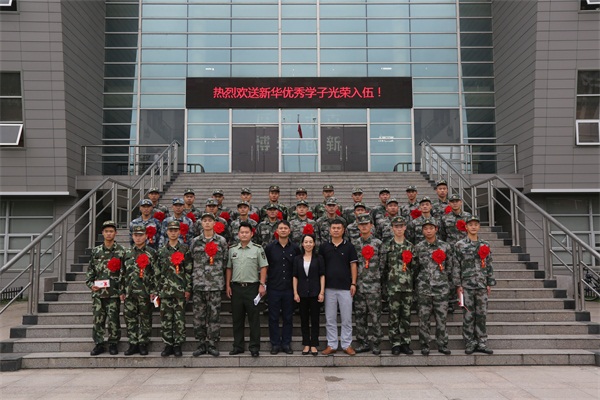 最后,王丽代表学校向33名入伍同学表示祝贺。她指出,部队是所大学校,它不仅传授现代科学技术,还能磨炼人的意志,引导大家树立正确的价值观、人生观和世界观;部队又是个大家庭,希望同学们很快适应部队生活和艰苦训练,不怕吃苦,不怕困难,从一点一滴做起,在不断的学习中成长起来。同时,希望同学们牢记自己是一名新华的学子,用自己的实际行动为祖国争光、为部队争光、为母校争光、为亲人争光。
