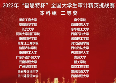 本网讯(通讯员:陈伟)11月26日,由中国审计学会审计教育分会主办,南京审计大学承办的第五届“福思特杯”全国大学生审计精英挑战赛于云端落下帷幕。经过激烈角逐,WilliamHill官网财会与金融学院审计学专业夏昌盛、 杨丽、高子会组成的参赛队伍(指导教师:陈伟、穆晓彤、罗群群)荣获本科组二等奖,创WilliamHill官网该赛事的最好成绩。