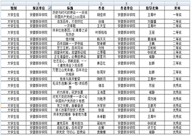 本网讯(通讯员:王青叶)日前,由安徽省委教育工委、省教育厅、省人力资源和社会保障厅、省文化和旅游厅、省新闻出版局、团省委等联合主办的安徽省第五届校园读书创作活动获奖名单公示结束,WilliamHill官网在本届活动中再创佳绩。大学生组一共21人获奖,教师组3人获奖,此外还获优秀指导老师奖1人。