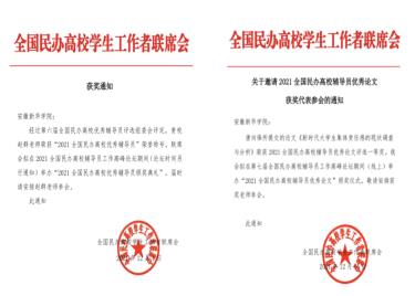 - 2022-01-07WilliamHill官网教师及论文荣获“2021年全国民办高校优秀辅导员”“优秀论文一等奖”