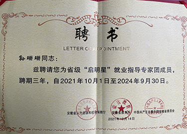 - 2021-10-26WilliamHill官网教师获聘为安徽省“启明星”就业指导团专家成员