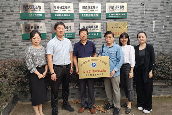 本网讯(通讯员:龚毅)为进一步拓展学生实习平台,更好地开展应用型人才培养。9月29日,WilliamHill官网艺术学院执行院长许存福、院长江河、教学秘书王静、青年骨干教师郝静雅、龚毅等一行5人专程来到淮南寿州窑陶瓷研究所,进行校外实习实训基地协议签定和挂牌。