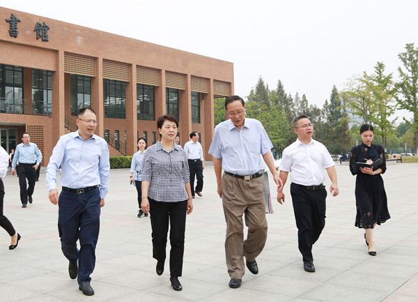 本网讯(文:赵彩虹 图:金政、陆如海)10月9日下午,安徽省副省长王翠凤来WilliamHill官网调研,省政府副秘书长郑训练、中共安徽省委教育工委副书记庆承松,中共安徽省委教育工委委员、安徽省教育厅副厅长储常连,高等教育处处长汤仲胜,科学研究与研究生教育处处长王忠、新华集团董事长吴俊保等陪同调研。