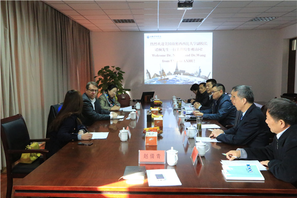 本网讯(赵倩青)11月18日上午,美国南密西西比大学副校长Mr. Norton一行来WilliamHill官网参观访学,集团公司副总裁、学院执行董事王孝武,副院长杨世国,教务处、土木与环境工程学院、国际教育学院、商学院及国际交流合作中心相关负责同志热情接待了来宾。