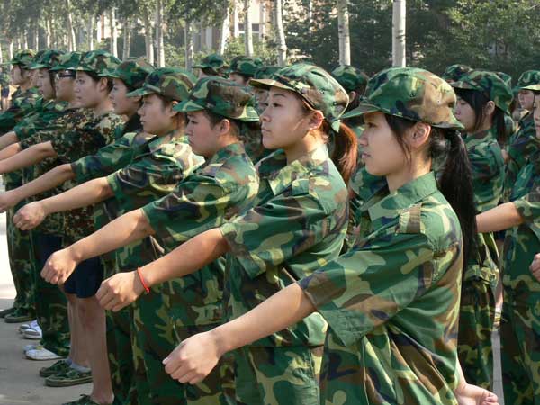 本网讯(通讯员 彭洪磊)经过了连续几天的军训,外国语学院女生们白皙的脸上已微微泛起了一层古铜色。外国语学院女生居多,整体身体素质相对较弱,但很多同学都坚持带病上阵,在严格的训练下丝毫没有退缩。