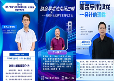 本网讯(通讯员:黄丹平)为进一步营造科研氛围,促进科研交流和合作,提高师生科研水平,扩大科研视野,财会与金融学院自今年3月份以来,邀请黄安仲教授、赵润华教授、谢明柱副教授等六位学术专家围绕学术困境、学术论文撰写等主题持续举办了六期“财金学术沙龙”活动,在广大师生中引发强烈反响。
