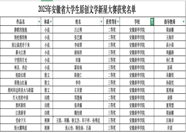 - 2025-11-28我院学子在2025年安徽省大学生原创文学新星大赛中喜获佳绩