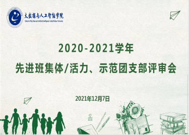 - 2021-12-09“互学互促 E起精彩”:大数据与人工智能学院2020-2021学年先进班集体/活力、示范团支部评审会圆满结束