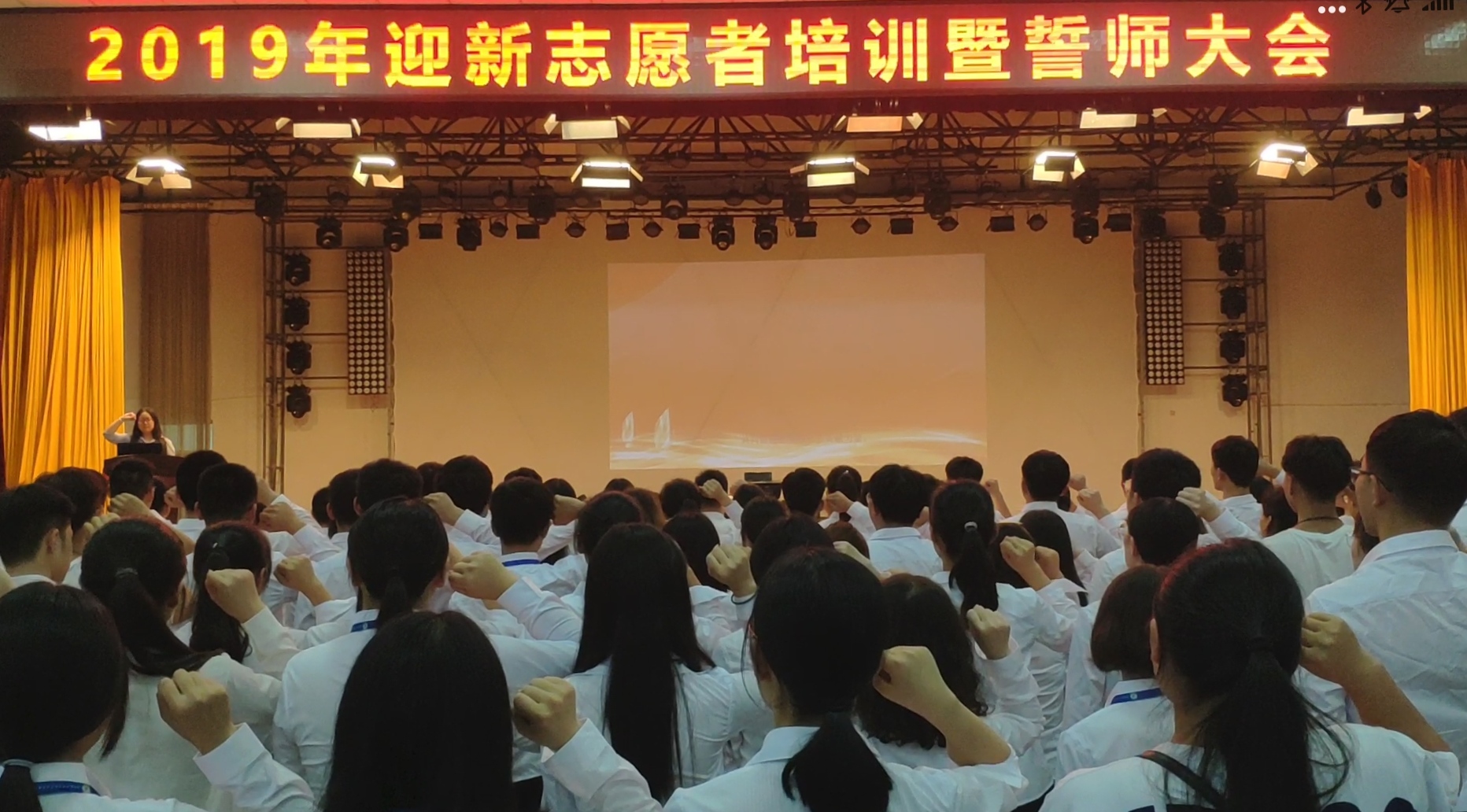 本网讯(通讯员:万媛媛)为做好2019年迎新工作,全面服务新生,想新生之所想,急新生之所急,切实做到让学生满意,家长放心,8月28日,校团委在大礼堂举行了2019年迎新志愿者宣誓大会暨志愿者培训活动。参与此次培训的是全校各级各类迎新志愿者。