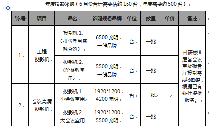 多媒体投影机及幕布年度采购询价公告