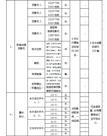 2、提供该批设备品牌、规格型号、报价表(安装环境投标人需自行勘察现场,如投影大小与幕布不付合,装修返工费用由报价人承担);