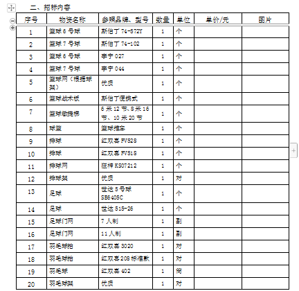 1、项目名称:《体育用品集中采购》项目