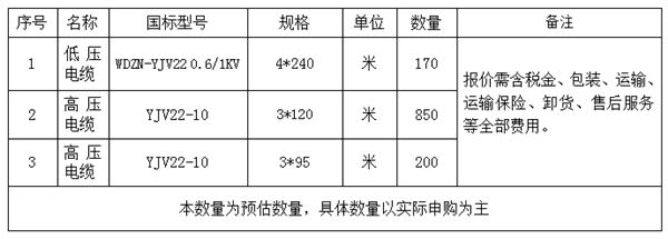 电缆项目采购一览表