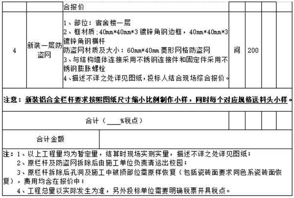 宿舍栏杆拆除及更换项目询价公告