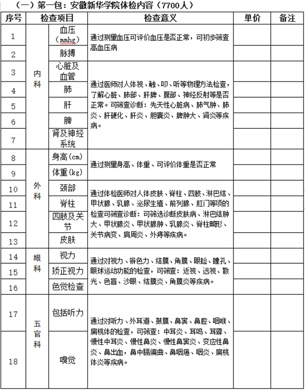 (第二包)安徽新华学校2020级新生体检项目(体检内容见安徽新华学校项目清单)