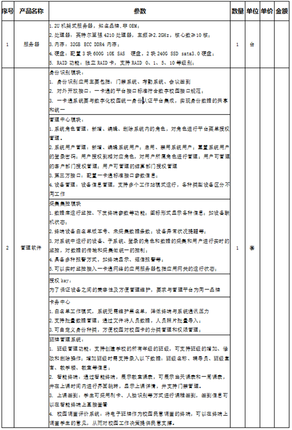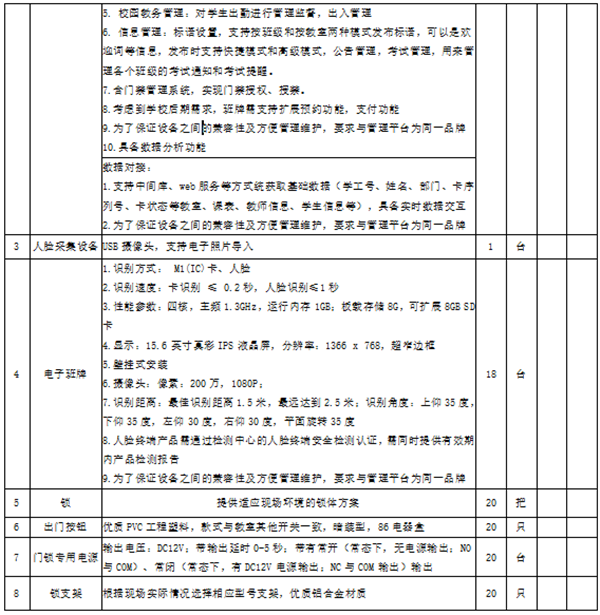 二、招标内容:实验室门禁班牌系统管理项目一览表