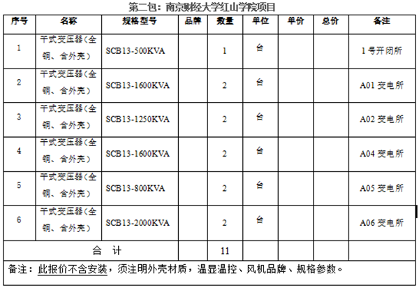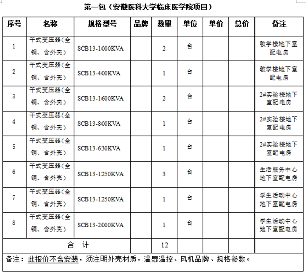 安徽医科大学临床医学院、南京财经大学红山学院变压器项目招标询价公告