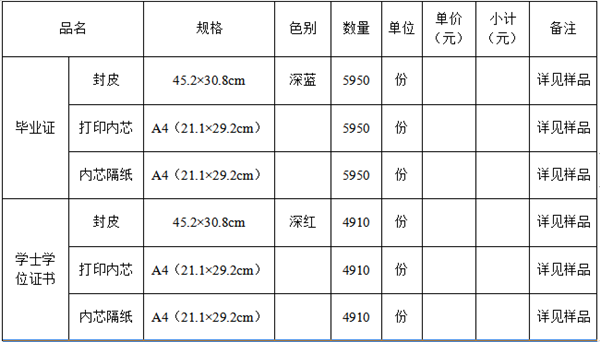 3.投标单位应具备三年以上(包括三年)印刷品(毕业证书类)制作经验;