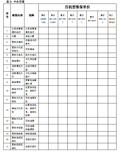 4.1每学期开学期间为空调维修高峰期,空调维保单位须有2-3名空调维修技术工人驻点保障服务。
