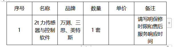 1、项目名称:2t力传感器与控制软件采购项目