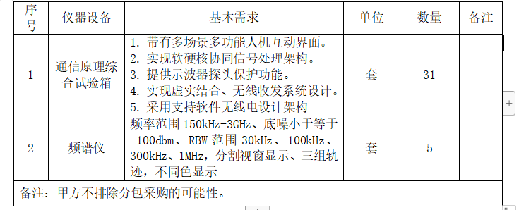 根据学院发展需要,现就我院《通信原理实验室》通信原理综合实验箱、频谱仪采购项目建设进行公开招标,欢迎全国符合条件的供应商积极参与。