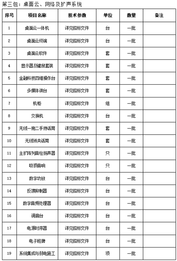 因单位需求,现对WilliamHill官方网站财会与金融学院实验室软件与设备采购(包含金融大数据实训中心一期、金融大数据实训中心二期,ARE全息企业认知中心)项目进行招标采购,欢迎全国有资质的供应商前来投标。