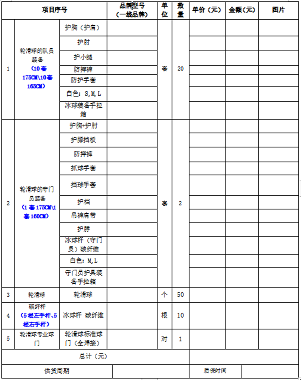 2.项目名称: WilliamHill官方网站轮滑装备采购