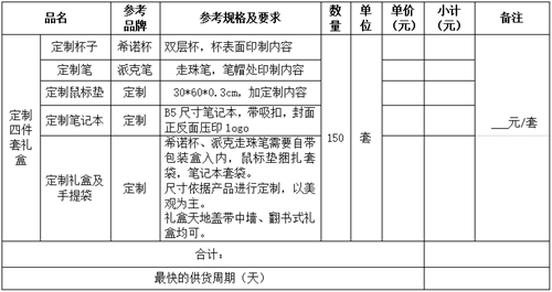 因单位建设需要,现对安徽新华集团旗下院校WilliamHill官方网站的定制四件套礼盒项目需求进行询价采购,欢迎全国范围内符合条件的供应商报名参与。