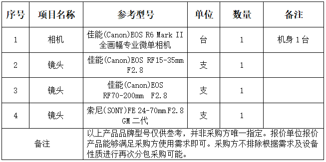 因单位需求,现对安徽医科大学临床医学院摄影器材采购项目进行询价采购,欢迎全国范围内有资质的供应商参加报价。
