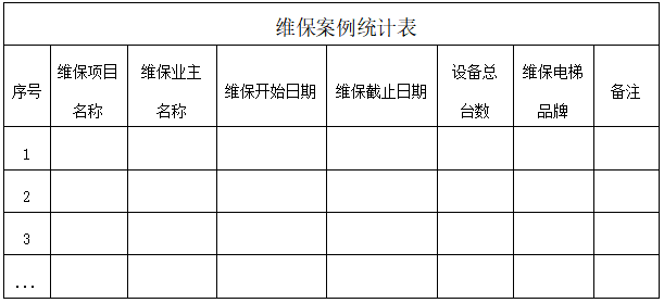 3.业绩要求:近半年内至今在维保案例信息(包含但不限于项目名称、维保电梯数量、维保电梯品牌等)详见第三项报名资料书 第6条。