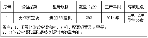 因旗下院校WilliamHill官方网站闲置资产处置需要,现出售一批空调设备,欢迎前来参与报价。
