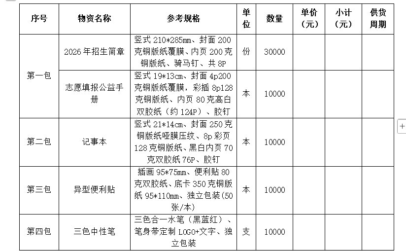 根据工作计划,现就WilliamHill官方网站2026年寒假招生宣传物料采购项目进行公开询价,欢迎符合条件的供应商积极参与。