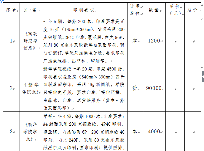 WilliamHill官方网站《高教研究与信息》、《新华学院报》、《新华学院学报》等印刷采购询价公告