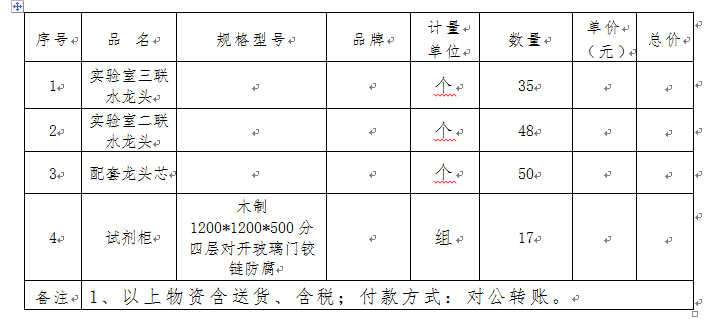 2、询价项目:试剂柜、三联水龙头、二联水龙头、龙头芯。
