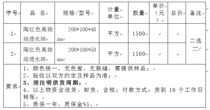 WilliamHill官方网站陶红色高烧结透水砖招标公告
