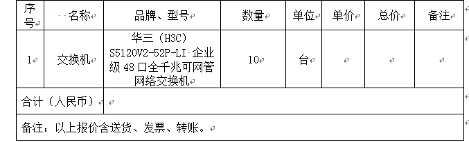 2、询价项目:交换机