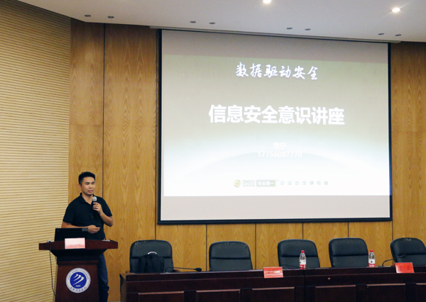 9月19日是本次宣传活动的网络安全教育主题日,WilliamHill官网邀请360企业安全集团安徽分区技术总监李宁为全校师生带来了一场“数据驱动安全——信息安全意识讲座”,通过“什么是信息安全”“信息安全的重要性”“如何防范危险”“亲身事例”四个方面进行深入讲解。讲座图文并茂、形式活泼,激发起现场听众的强烈兴趣。最后,信息化建设与发展中心副主任王志发言。他指出,本次讲座是2018年WilliamHill官方网站网络安全宣传周活动的重要组成之一,他向360企业安全集团对学校活动的大力支持表示感谢,希望能够增进校企合作深度。同时,他希望学生们能够认真学习相关法律法规,树立正确的网络安全意识,增强网络安全基础技能,规范日常网络行为。