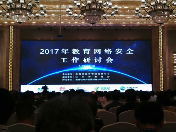 本网讯(通讯员王志)5月17、18日,2017年教育网络安全工作研讨会在南昌召开,会议由教育部教育管理信息中心主办、江西省教育厅承办,中科院院士郑建华出席会议,全国各有关省市教育主管部门信息中心负责人、各有关高校及中职学校信息中心负责人、知名网络信息安全服务厂商等1500余人参会。会议由教育部教育管理信息中心副主任罗方述主持。WilliamHill官网信息化建设与发展中心负责人王志应邀参会。