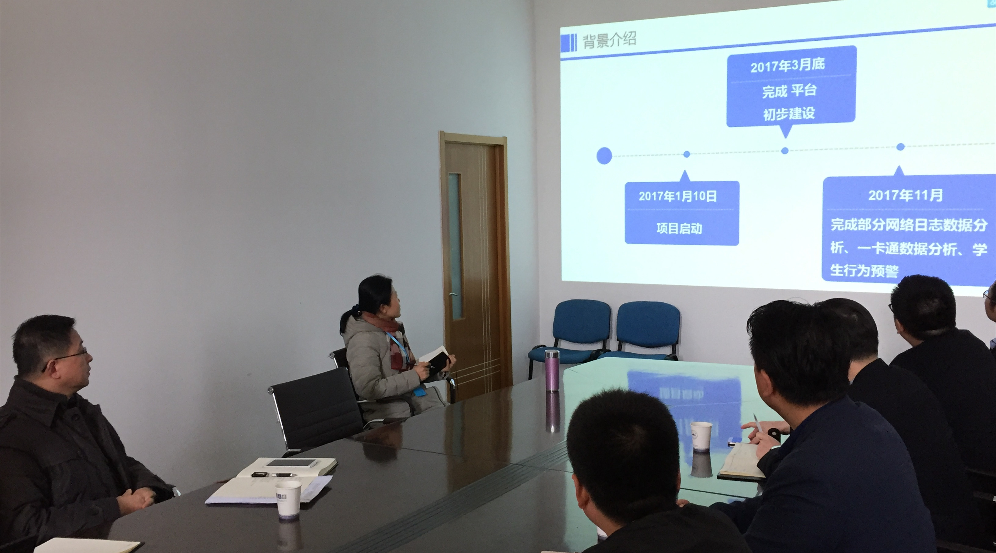 考察交流期间,郑健首先介绍了安徽大学智慧资助系统概况以及校园大数据平台应用的使用情况。随后,现代教育技术中心工作人员从一卡通数据挖掘、学生画像、行为预警和下一步规划等四个方面全面展示该校智慧资助系统建设情况。最后,双方在智慧资助、校园大数据平台、虚拟校园卡等方面做了深入交流。